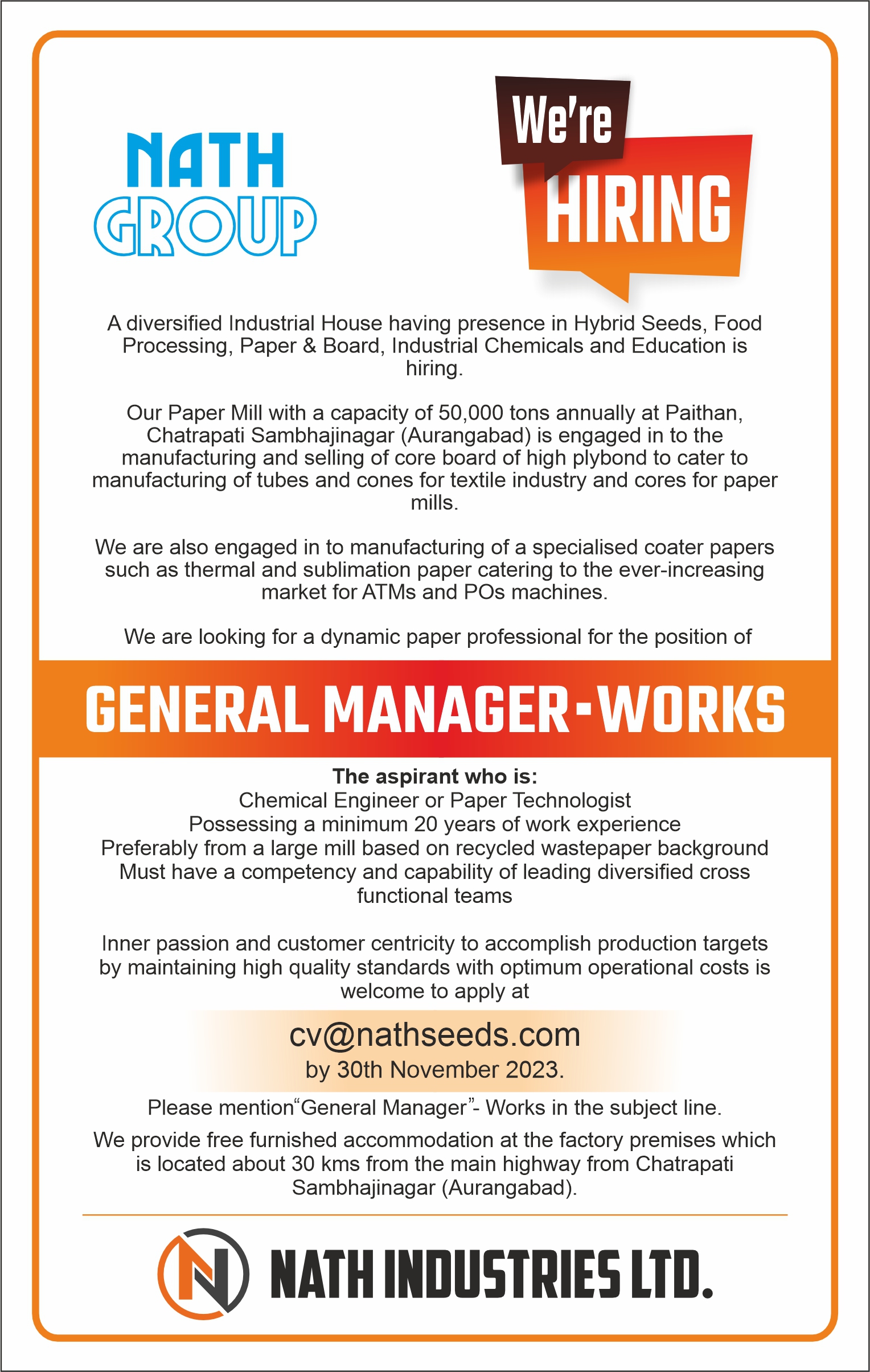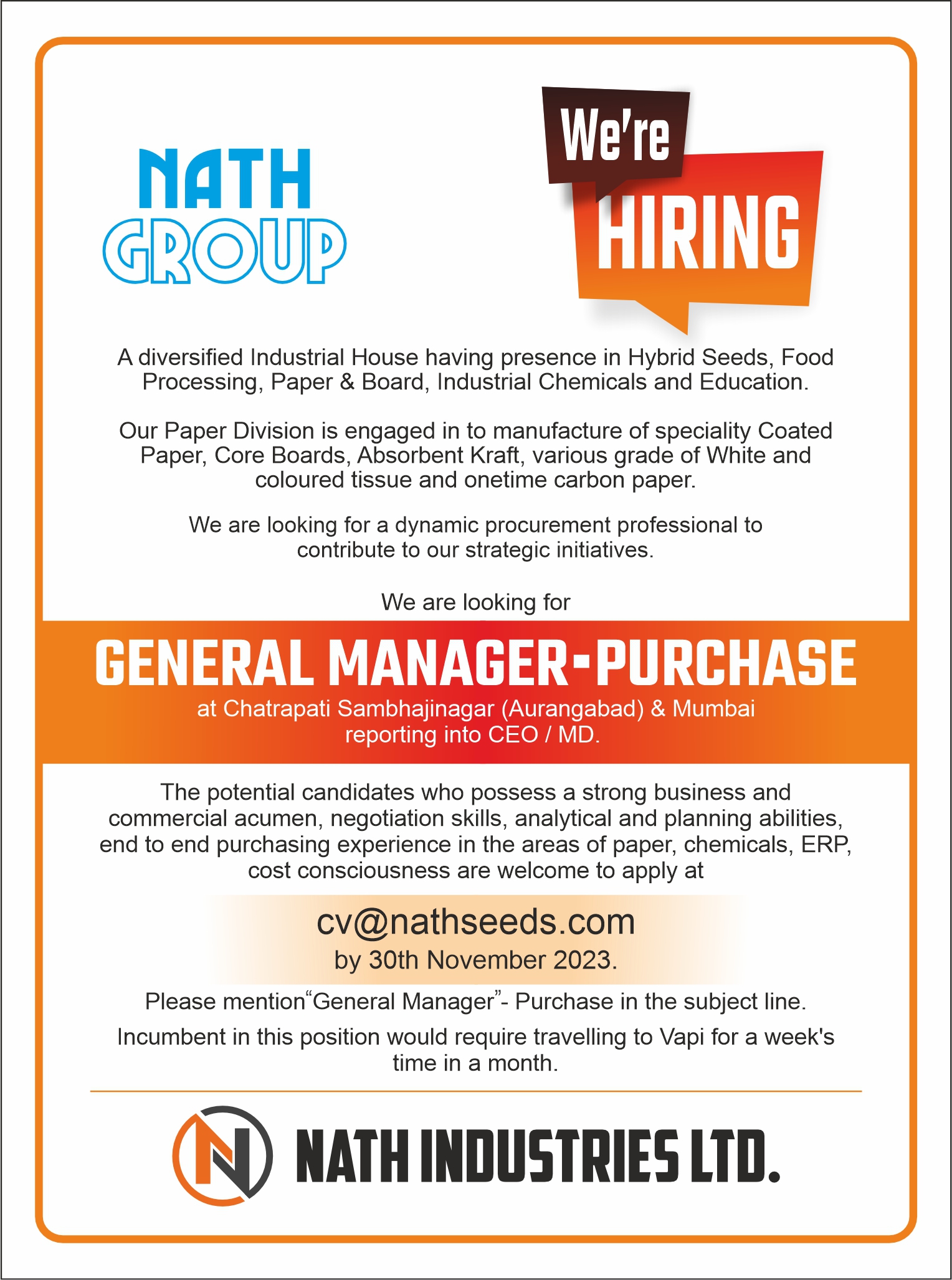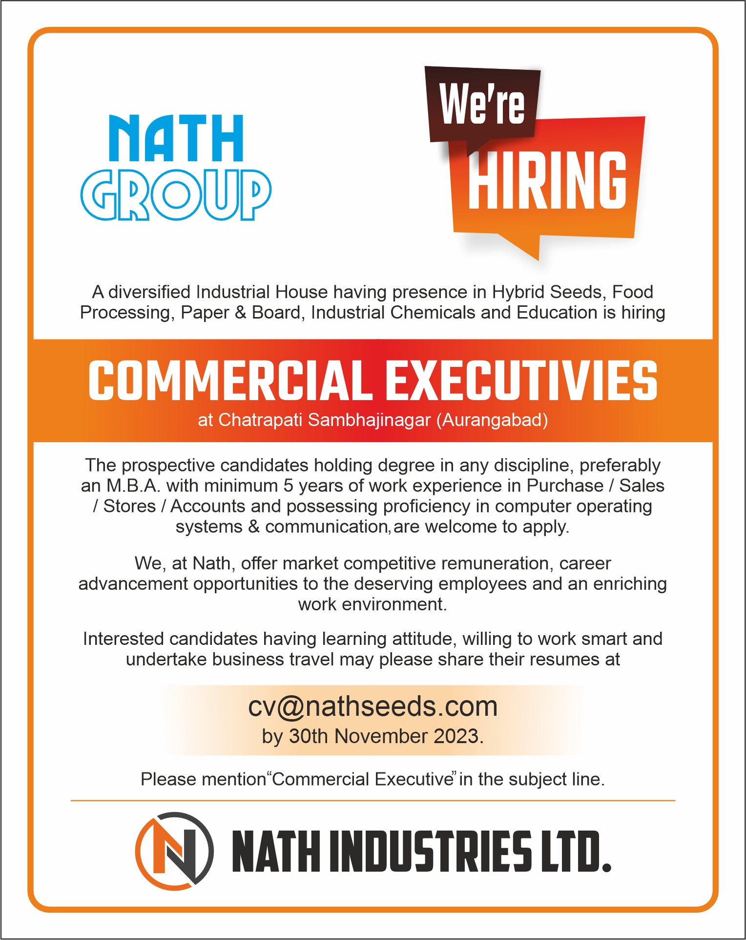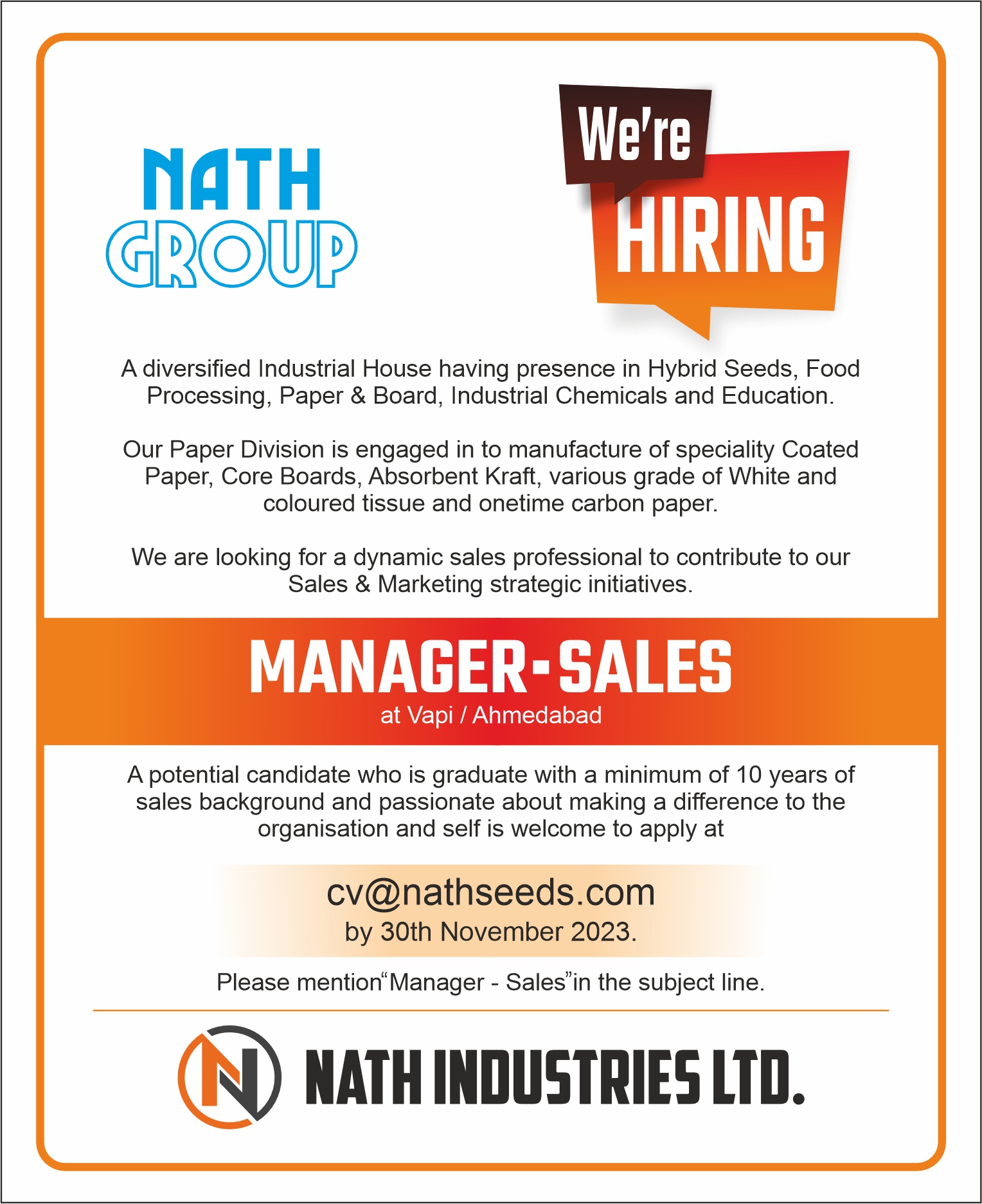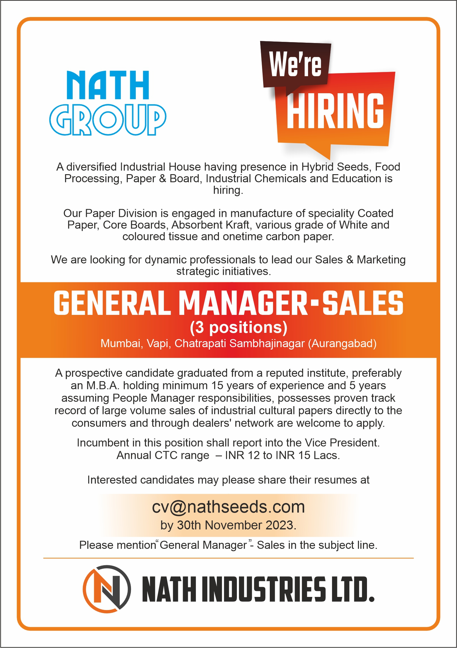 We are looking for sales managers - two positions – one based at Mumbai and another based at Aurangabad.